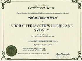 NBOB GR CH 'PR' Mystic's Hurricane Sydney, National Best of Breed 2005, BIS Winner